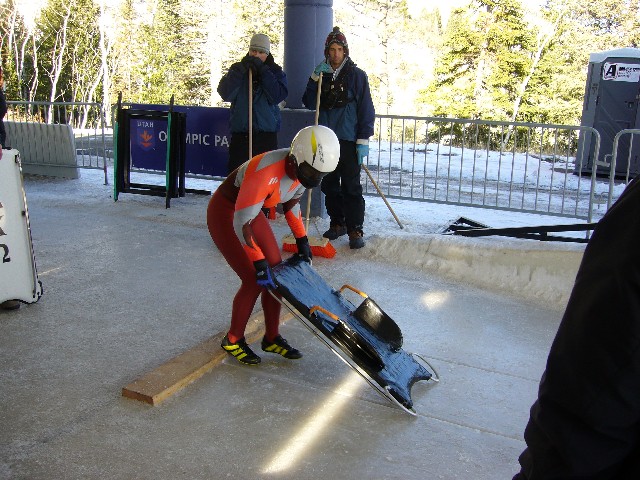 Nozomi Komuro (JPN), with the womens' fastest push start of the heat -- 5.24.