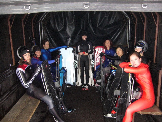 (L-R) Natasha Ellison (CAN), Jody Barton (USA), Felicia Canfield (USA), Mackenzie Flanders, Babs Isak (USA), Japanese slider, Emily Malcolm (?) (CAN), Sarah Reid (CAN).